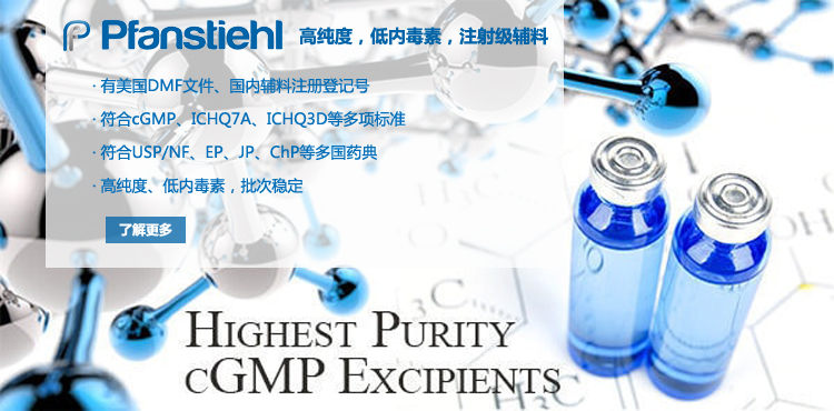 “熱烈祝賀Pfanstiehl的注射級甘氨酸Glycine(G-140)喜獲CDE登記號F20250000403, 這是Pfanstiehl產品獲得的第18個CDE登記號!”甘氨酸在醫藥輔料制劑中應用廣泛,, 可作為緩沖劑,增溶劑,穩定劑等,具有諸多優勢。Pfanstiehl秉承一貫高品質理念,為滿足全球生物制藥行業對于高品質甘氨酸的需求,隆重推出的注射級甘氨酸Glycine (G-140), 具有超高純度,超低內毒素,超低金屬殘留的特點,單獨檢測29種金屬離子,并且新增DNA,RNA,DNA酶,RNA酶和脂肪酶,亞硝酸鹽等多項質量指標的檢測,符合多國藥典規定(USP, EP, BP, JPE, ChP),可用于生物治療性藥物和疫苗的生產。產品信息:· 產品名稱:Glycine, High Purity, Low Endotoxin, Low Metals, USP, EP, BP, JPE, ChP (G-140)· 中文名稱:甘氨酸· 分子式:C2H5NO2· 分子量:75.07 g / mol· CAS號:56-40-6· 產品貨號:G-140產品特點: · 超高純度,超低內毒素,超低微生物含量,超低金屬雜質殘留· 質量指標新增DNA,RNA,DNA酶,RNA酶,脂肪酶和亞硝酸鹽檢測· 符合多國藥典:USP, EP, BP, JPE, ChP· 符合ICH Q3D標準· 符合GMP標準· 已獲DMF和CDE登記號 產品應用:· 緩沖劑· 穩定劑· 增溶劑如果您對Pfanstiehl注射級別Glycine G-140感興趣,歡迎聯系Pfanstiehl 中國區代理商北京西美杰科技有限公司獲得如下詳細的產品概況說明文件和測試樣品。Pfanstiehl Inc.最新產品系列如下,歡迎聯系北京西美杰科技有限公司獲取100g裝免費樣品。北京西美杰科技有限公司為Pfanstiehl中國代理,為客戶提供完善的技術支持與售后服務。歡迎撥打西美杰客服電話400-050-4006或者登陸網站www_xmjsci_com.jssjsh.com了解更多信息。 更多>